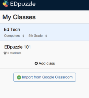 Recently I found that EdPuzzle makes creating a classroom a snap if you already have students in Google Classroom. That magic happens with the “Import from Google Classroom” button. Select an existing class or Add class and then “Import”. Sweet.